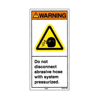 LABEL, IN DO NOT DISCONNECT ABRASIVE HOSE..IN , ENGLISH